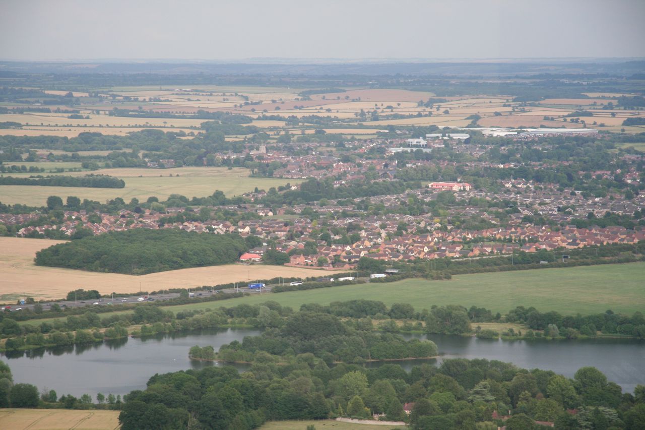 Gayhurst and Tyringham (LH) Newport Pagnell (RH) seen from 400ft above proposed site